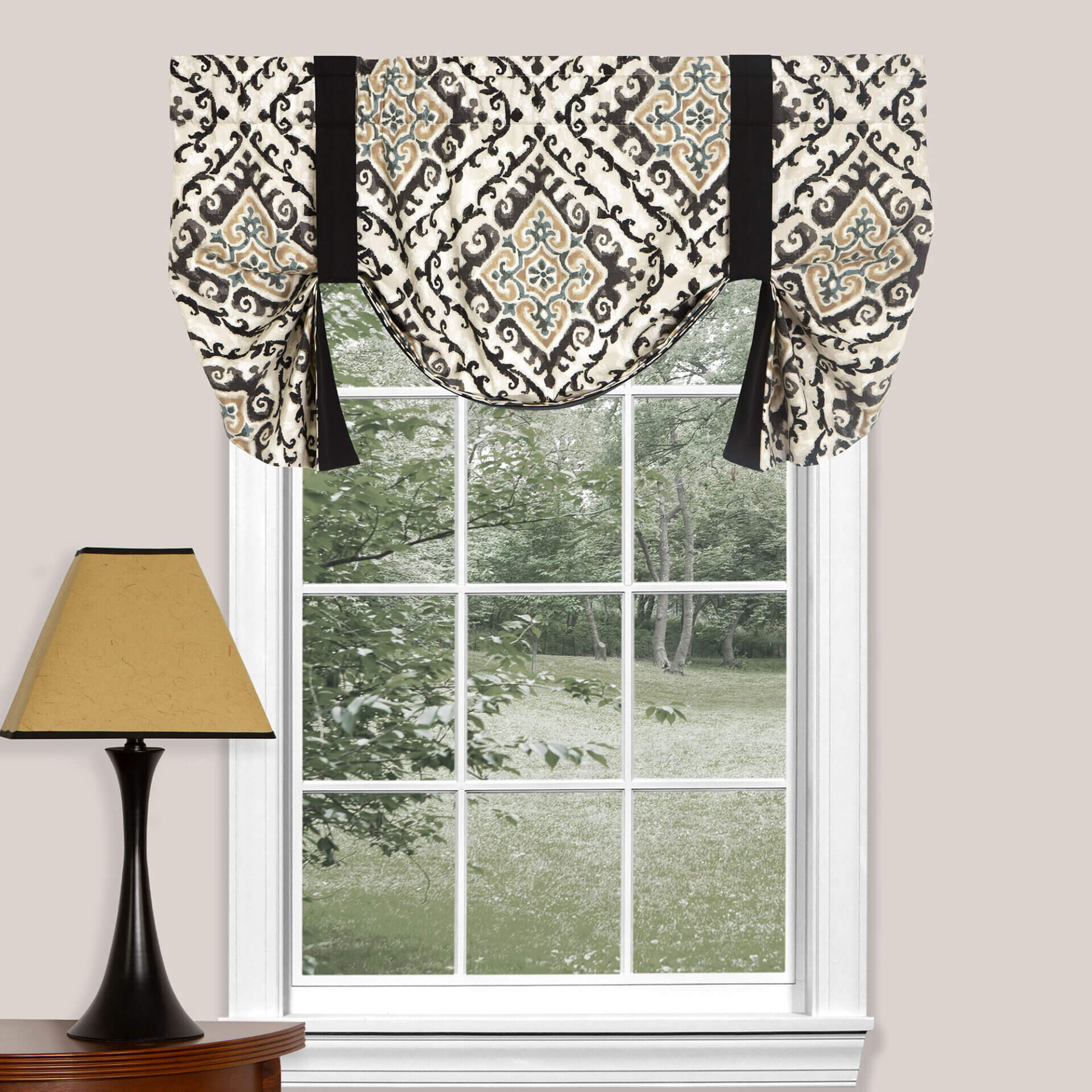 - This tie-up valance is designed to work with standard size windows in bedrooms, dining rooms, and living rooms.