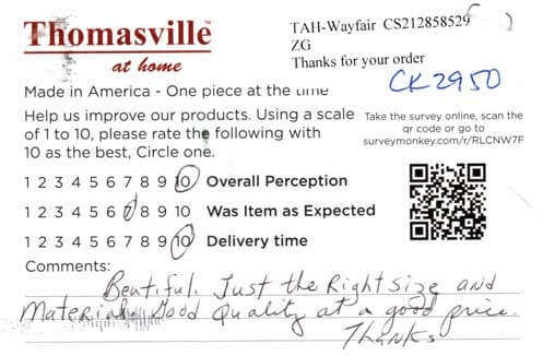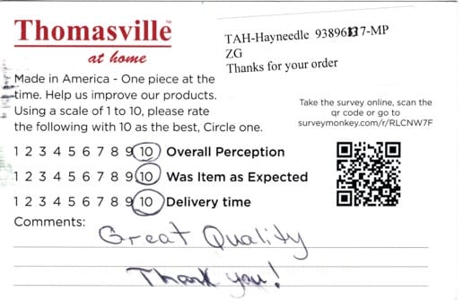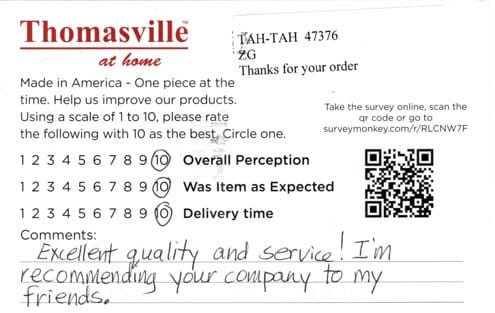Happy with the quality of the materials used and the beautiful workmanship. Love its made in the USA. Would use this company again. Thank You.