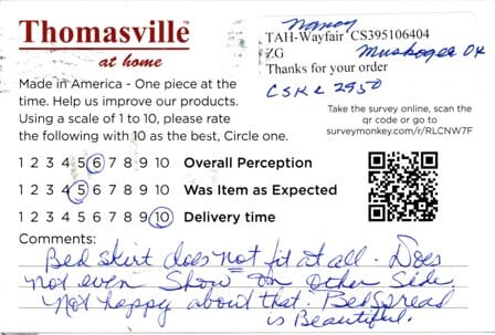 10+, A++, my bed linens are perfect and so beautiful! Thank you for making such a pretty USA product!
