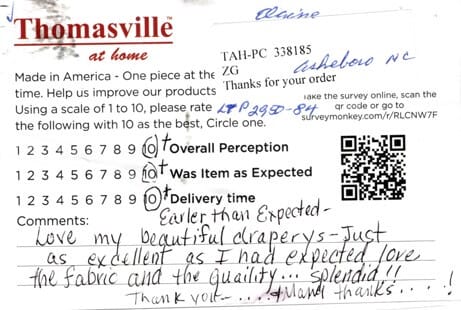 Love my beautiful drapery’s – Just as excellent as I had expected. Love the fabric and the quality… Splendid!! Thank you and many thanks. Earlier than expected