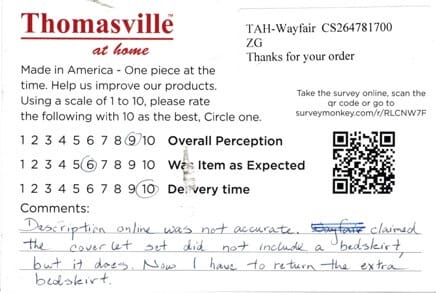 Description online was not accurate. Claimed the coverlet set did not include a bedskirt, but it does. Now I have to return the extra bedskirt.