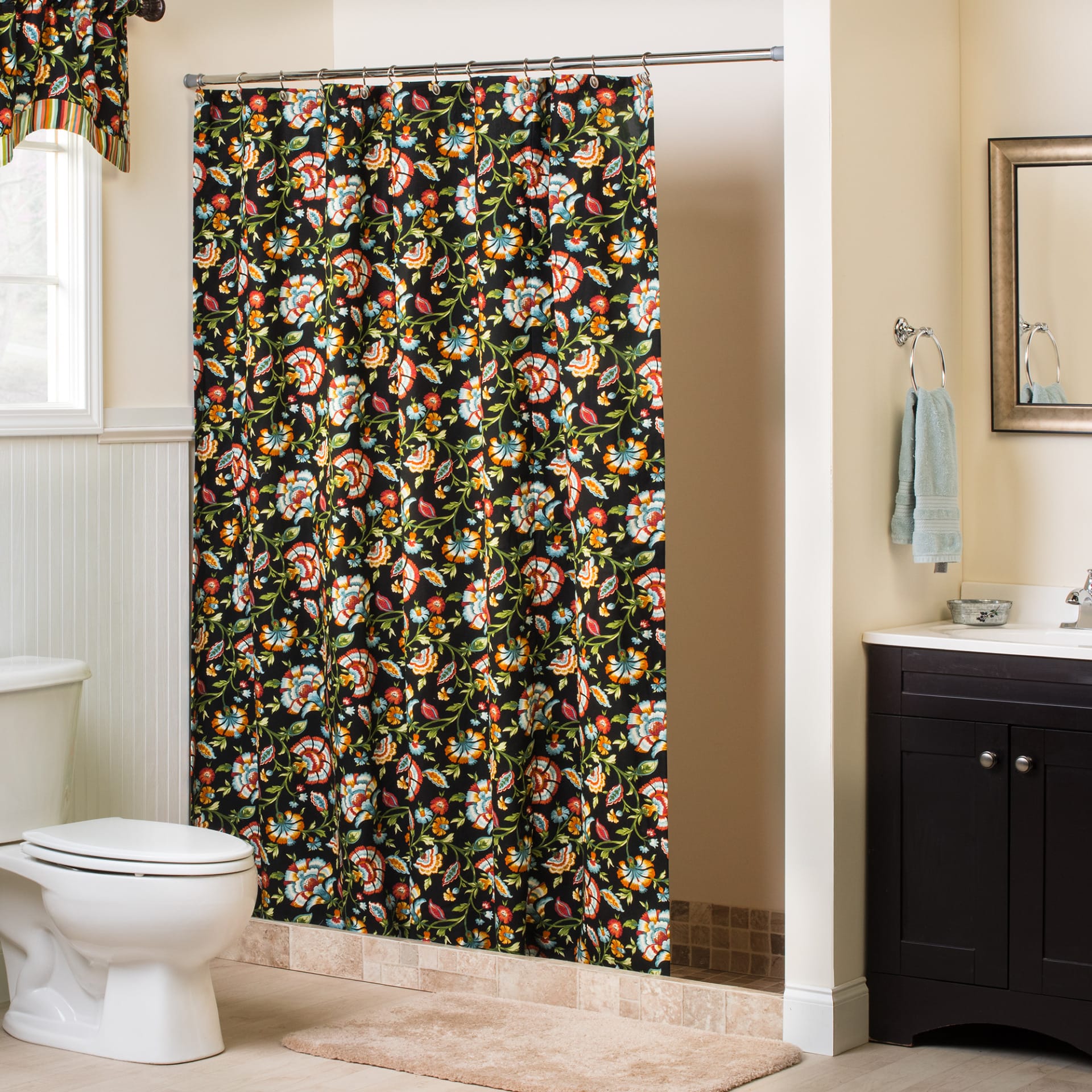 - This one-piece shower curtain is 72″ Wide x 75″ long.