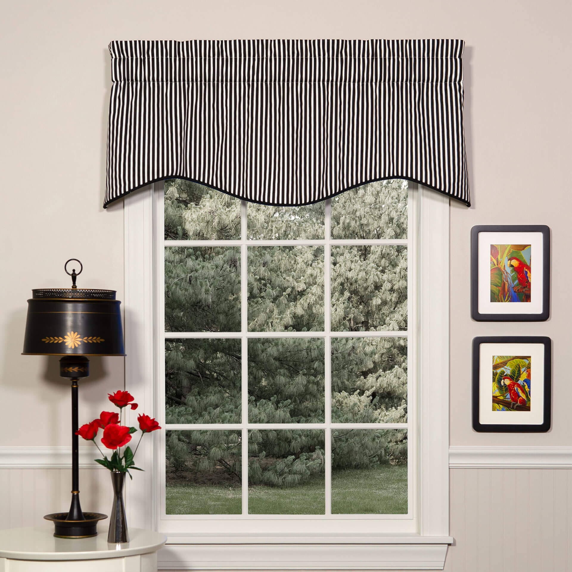 - This scalloped valance is designed to work with standard windows in bedrooms, dining rooms, and living rooms.