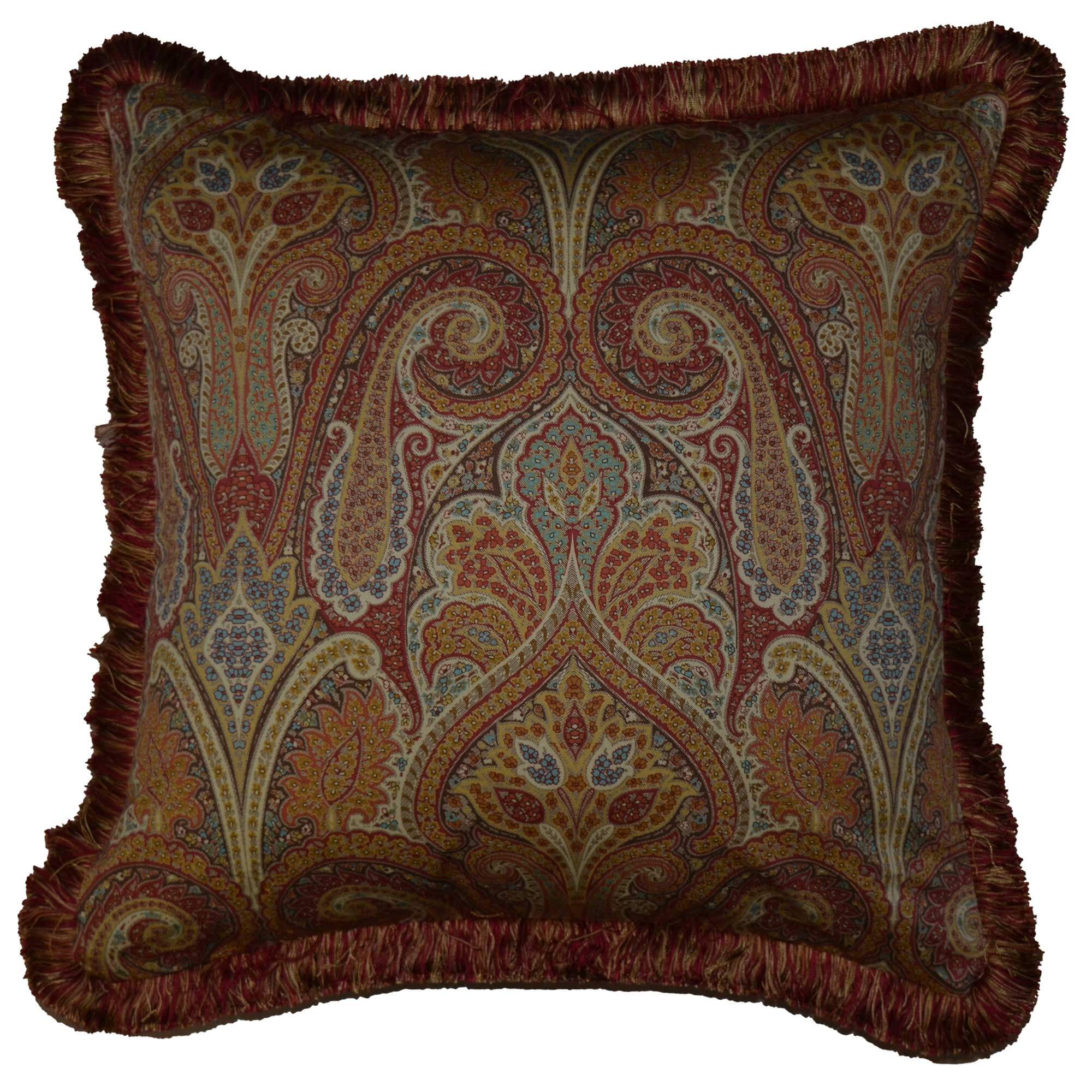 Transform your living space with the Thomasville at Home Cashmere Red with Fringe 20″ Square Pillow Cover Only. This luxurious pillow cover features a stunning design in shades of red, gold, green, orange, and brown, adding a touch of elegance and color to any room. Crafted from high-quality fabric, this pillow cover ensures durability and a luxurious feel. Perfect for refreshing your home decor, it easily fits standard 20″ square pillows, making it a versatile addition to your living room, bedroom, or seating areas. Elevate your interior style with the captivating beauty of this elegant pillow cover.