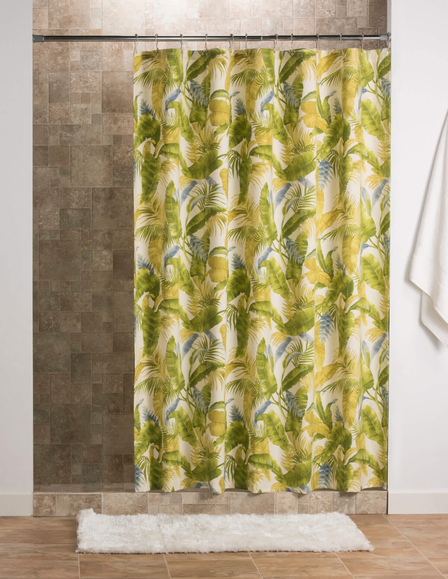 - This one-piece shower curtain is 72″ Wide x 75″ long.