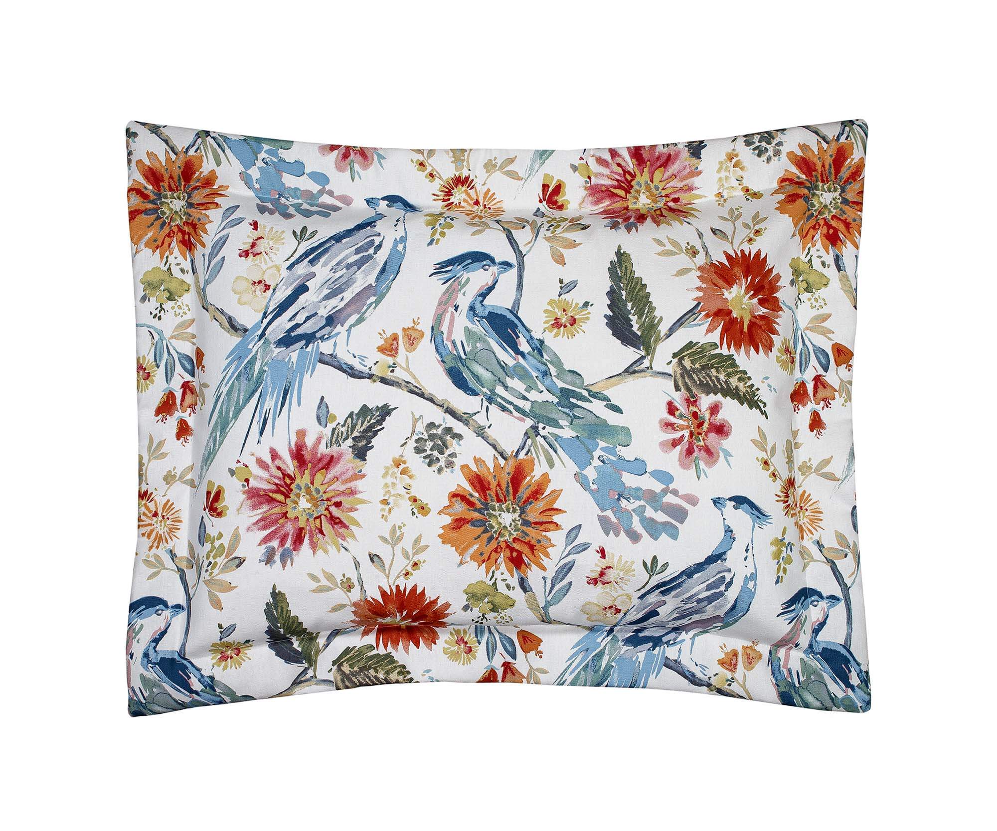 Discover the Chambalon King Size Shams from Thomasville At Home, a floral delight featuring birds and flowers set against a cream backdrop. Made from 100% cotton fabric, these shams are proudly crafted in the USA. Transform your bedroom with this charming and high-quality sham.