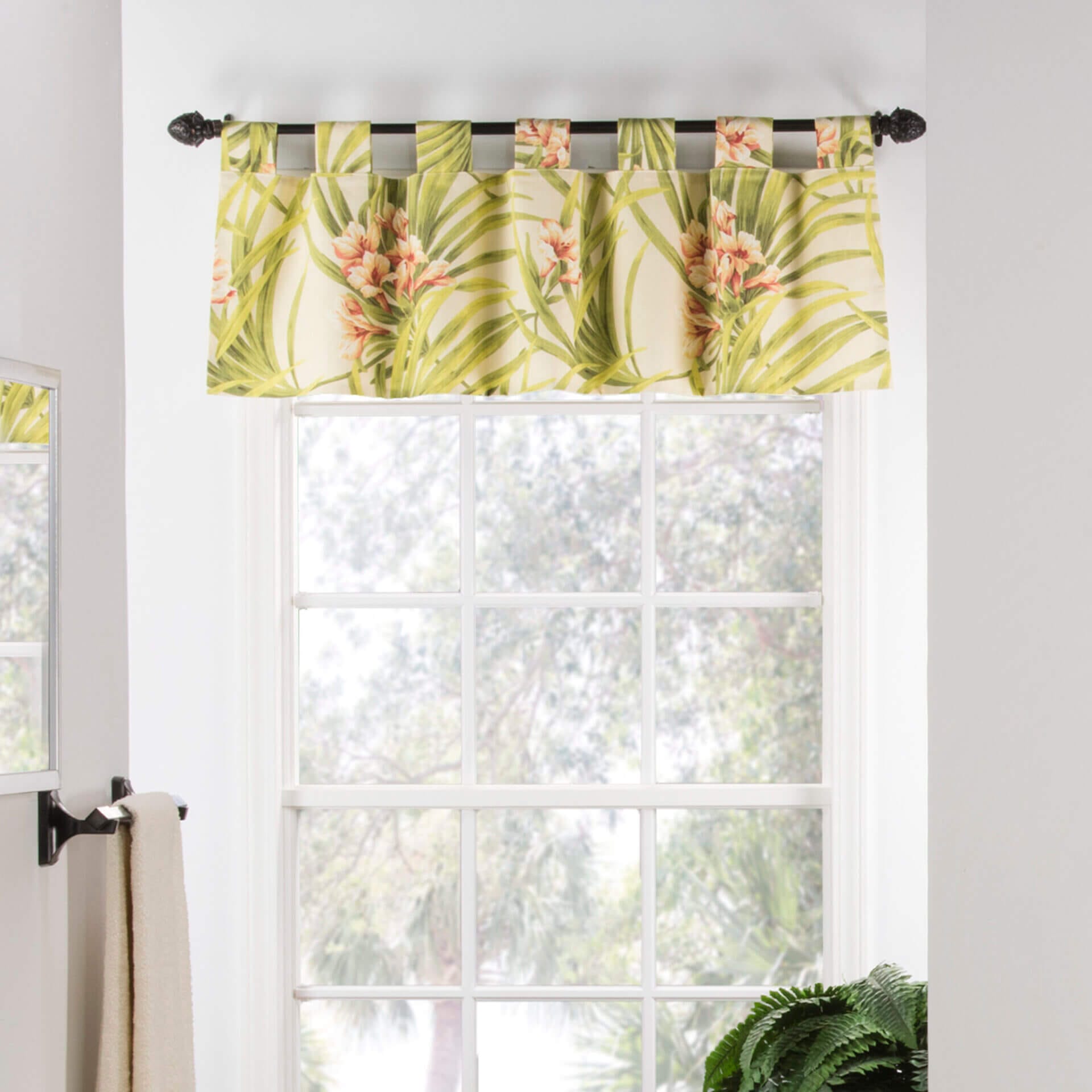 Enhance your home decor with the Cozumel Window Treatment – Tab Valance from Thomasville at Home. This elegant valance, handcrafted in the USA, features a 100% cotton face with a vibrant tropical print, fully lined with poly/cotton for added durability. Measuring 52″ wide by 15″ long, including a 3″ tab, it offers a perfect blend of style and functionality. Ideal for adding a touch of sophistication to any window, this valance is recommended for dry cleaning to maintain its pristine condition. Transform your space with this beautiful and practical window treatment.