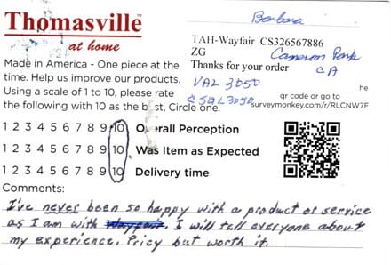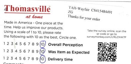 Delivery was very long and almost canceled. The comforter is very nice. This is my second one by Thomasville purchased this year.