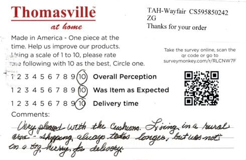 Very pleased with the cushions. Living in a rural area – shopping always takes longer, but was not in a big hurry for delivery.