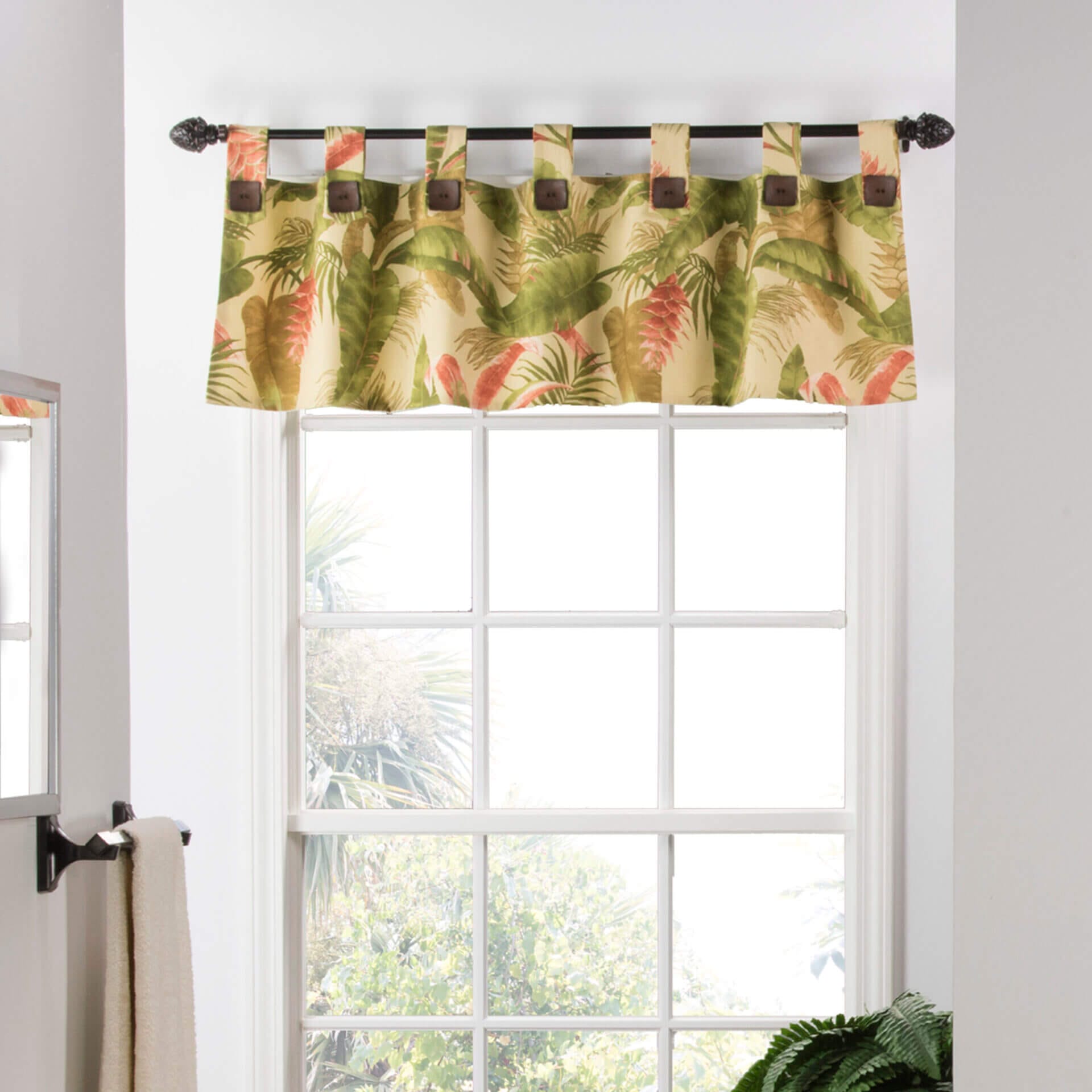 The La Selva Natural Window Treatments feature a tab valance design that is both stylish and practical. Crafted from 100% cotton duck, this window treatment boasts a durable print that adds a touch of elegance to any room.
