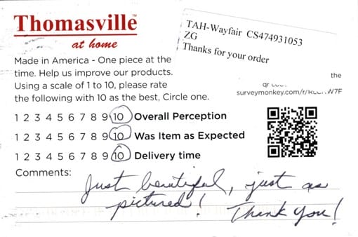 My chair cushions arrived and I am delighted! They are absolutely beautiful and the Quality is better than I imagined! They actually look better than the photograph, even though the photograph is pretty accurate! They look so expensive , even though they were very reasonable! I am a very happy customer! I’ve been looking for cushions for years to replace my 20 year old Waverly cushions. These compare in every way but Thomasville added the elastic to the ties which makes all the difference in the fit and ease of sitting on them. Good job, Thomasville!