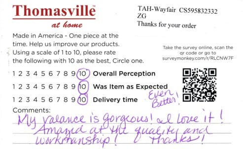 My valance is gorgeous! I love it! Amazed at the quality and workmanship! Thanks!