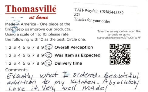 Exactly what I ordered. Beautiful addition to my kitchen. Absolutely love it. Very well-made!